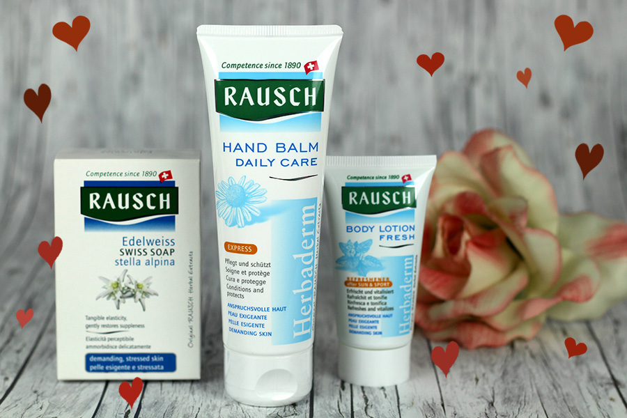 Ich wünsche euch allen einen fröhlichen Valentinstag. Die einen lieben ihn, die anderen hassen ihn. Ob ihr mit euren Liebsten oder allein verbringt, eigentlich ist jeder Tag ein guter Tag, um zu feiern und seinen Herzmenschen zu sagen, dass man sie liebt. Warum dann nicht heute, wo eh schon ganz viel Liebe in der Luft liegt. Ob es ein handgeschriebener Brief, ein leckeres gemeinsames Essen oder ein materielles Geschenk ist, völlig egal, solange es von Herzen kommt. Und deshalb habe ich heute ein kleines, aber feines Gewinnspiel für euch. Zusammen mit der Schweizer Firma Rausch verlose ich zwei herzliche Geschenksets, bestehend aus Handcreme, Bodylotion und Seife: eines hier auf dem Blog, das andere bei Instagram. Da heiße ich auch Pinkpetzie.
