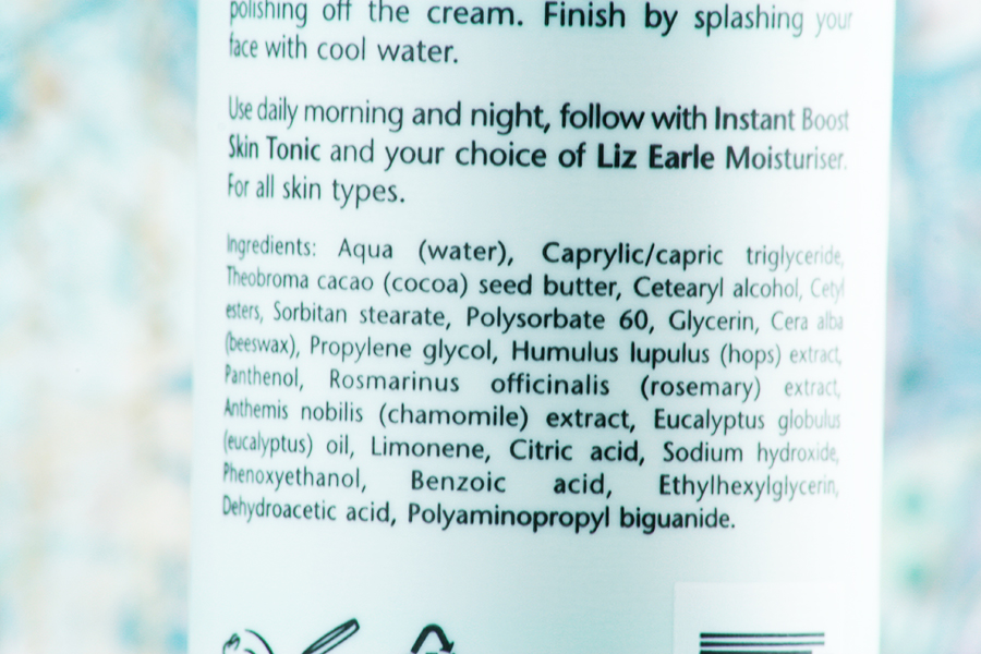 Was ich schon mal vorne weg sagen möchte, der Reiniger enthält ausschließlich natürliche Inhaltsstoffe, die nicht an Tieren getestet werden. Überhaupt ist die Firmenphilosophie von Liz Earle sehr sympathisch. Reizfrei sind die Inhaltsstoffe aber leider nicht. Für wen das ausschlaggebend ist, der sollte sich lieber nach einem anderen Produkt umsehen.